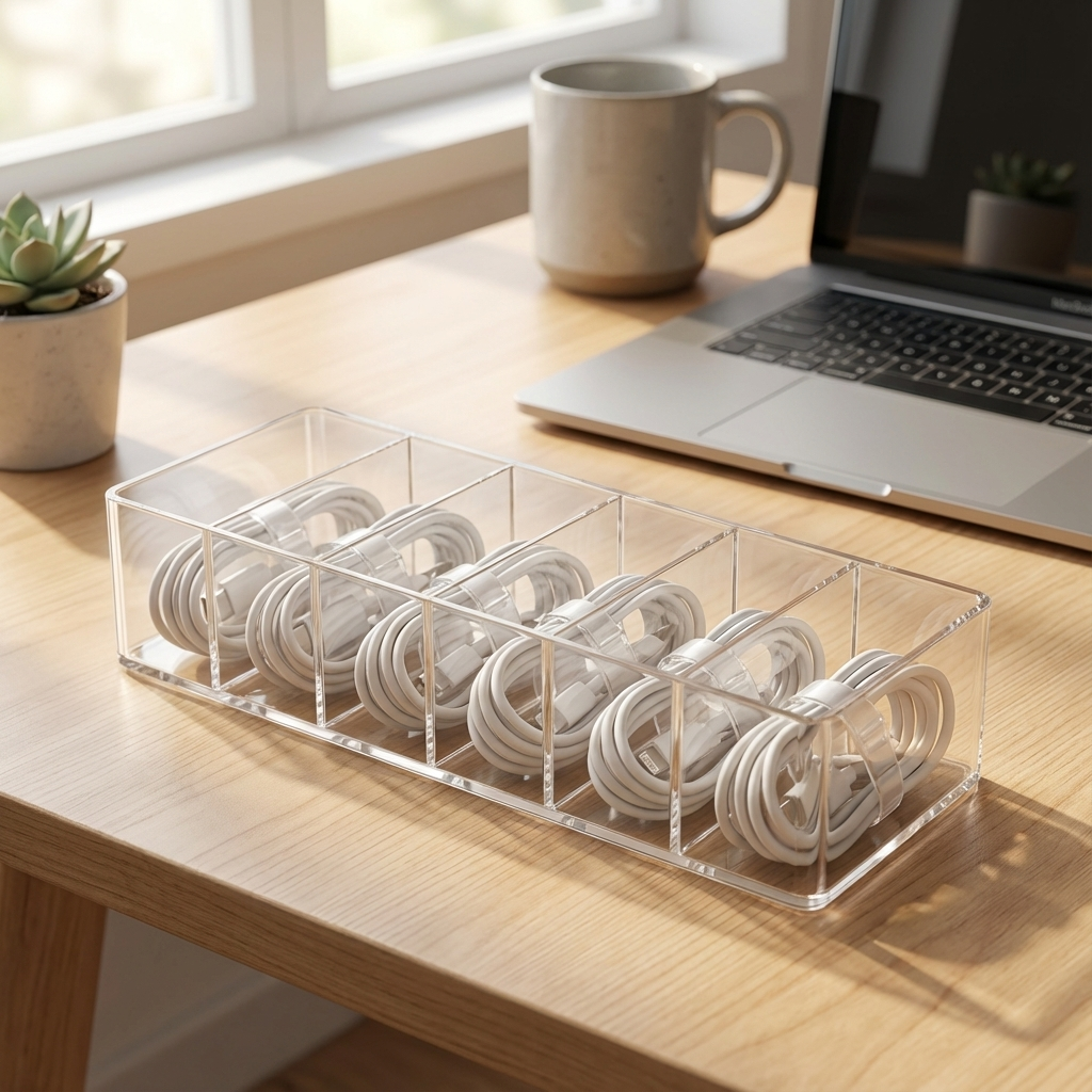 “I love that it’s clear and dust-proof. I can see exactly which cable I need without digging through a drawer.” – Taylor M.